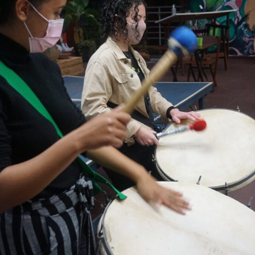 Mulheres no Batuque é uma parceria entre Casa OPOCA e Escola de Samba Zo Livre do Tio Biju. As oficinas acontecem todas as quintas-feiras às 19h na Casa OPOCA com Luana Maria.